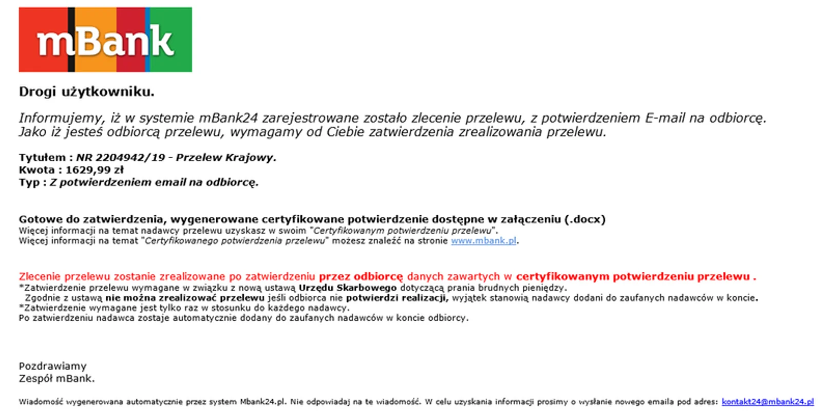 Tylko na pozór jednak, ponieważ w rzeczywistości jest to kolejny atak (znanego w światku) cyberprzestępcy. Dodatkowe informacje o potwierdzenie przelewu mbank oraz tematach pokrewnych dodamy niebawem. Jak wydrukować potwierdzenie w mbanku? Zobacz jakie artykuły na temat potwierdzenie przelewu mbank przygotowali nasi specjaliści Widzę że sporo osób miało przejścia z tym bankiem odnośnie za.
